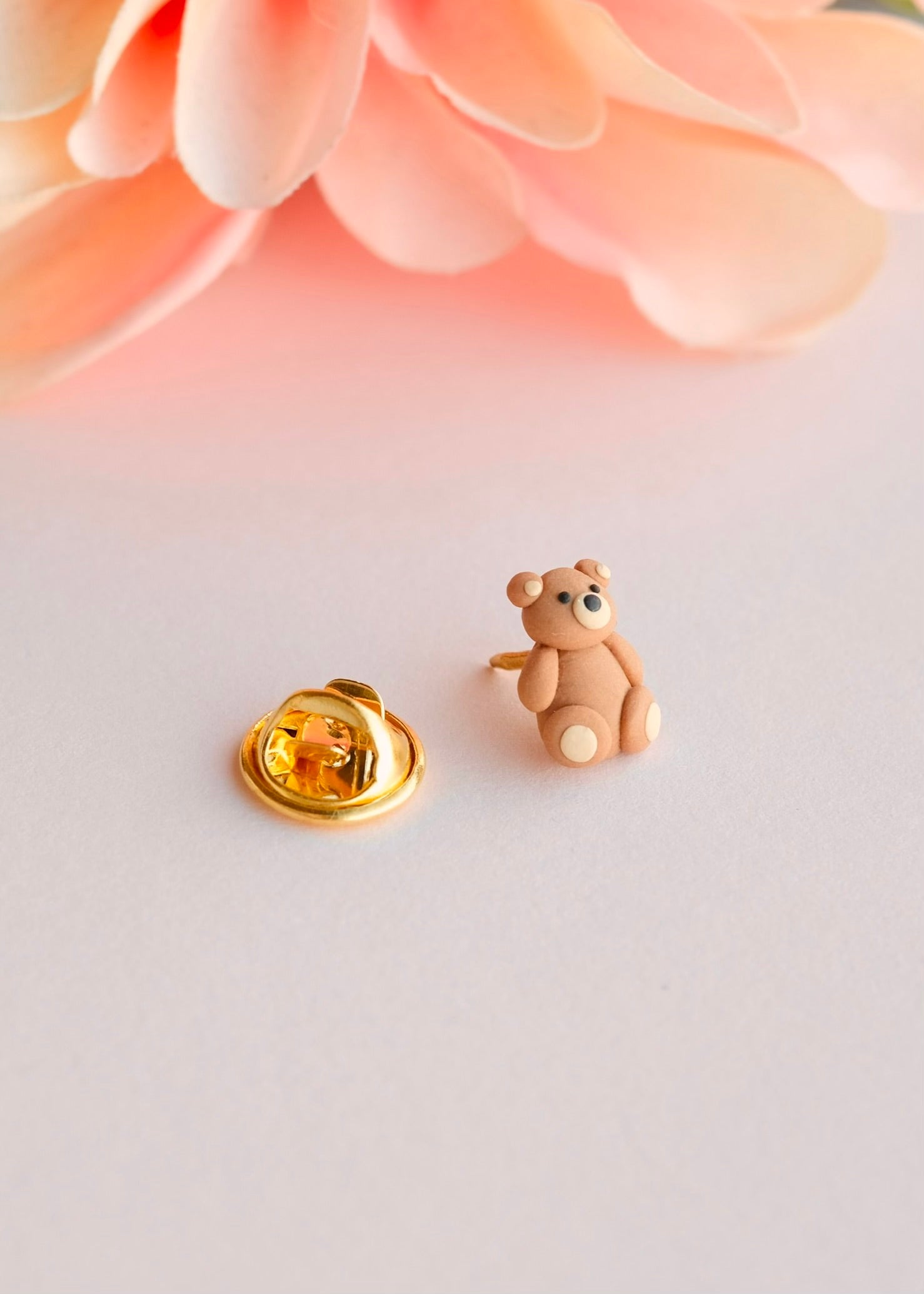 ∴ Gold butterfly clasp pins. Resin coated clay.